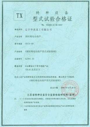 LDP電動單梁型式試驗合格證